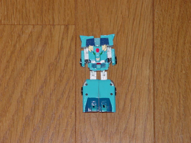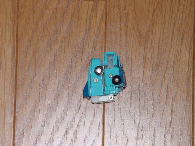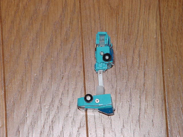 | 16.車輪の付いている部分をずらして手をだし、 バンザイをさせて、ガードの溝に入るように黒い脇の部分を引く。 | |